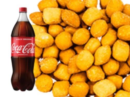 05 Opções de Mini Salgadinhos de 10g para você se deliciar, com uma Coca-Cola de 1 litro Geladissíma.