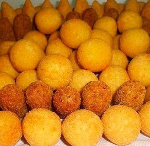 300 salgados variados sendo:60 coxinhas 10g60 Risoles 10g60 bolinhas de queijo 10g60 kibe 10g60 bolinhas de carne 10g**Serve até 12 pessoas mini tamanho 10g